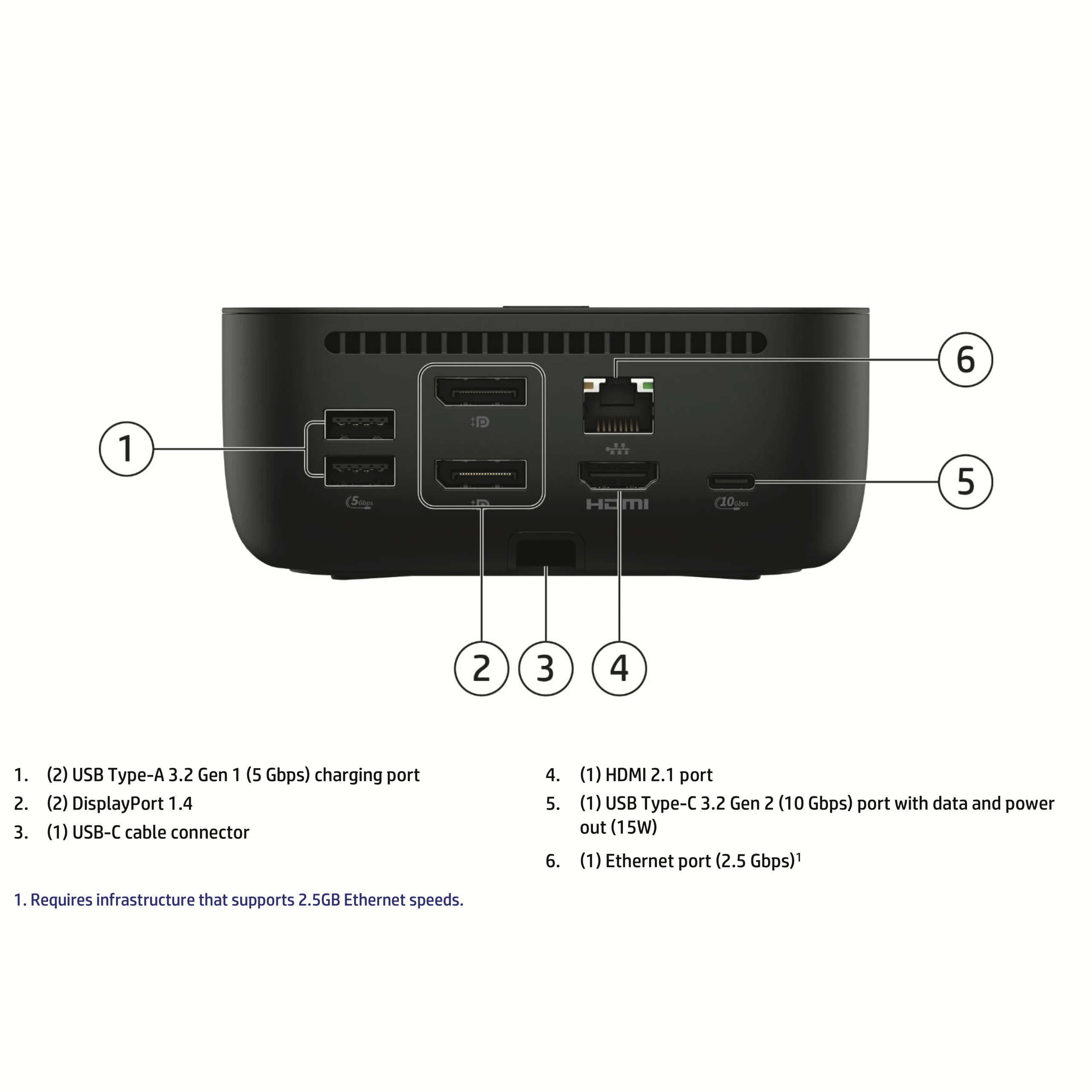 HP USB-C G6 Dock (100W) met 2 x DisplayPort + 1 x HDMI + Ethernet + Audio + 3 x USB-A + 2 x USB-C