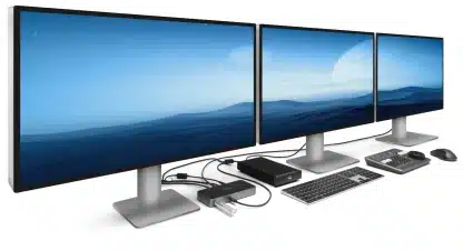 Wanneer de OWC Thunderbolt 5 Hub is aangesloten op een Windows laptop met Thunderbolt 5 dan kunnen er zelfs drie monitoren worden aangesloten met een max resolutie van 4K@144Hz.