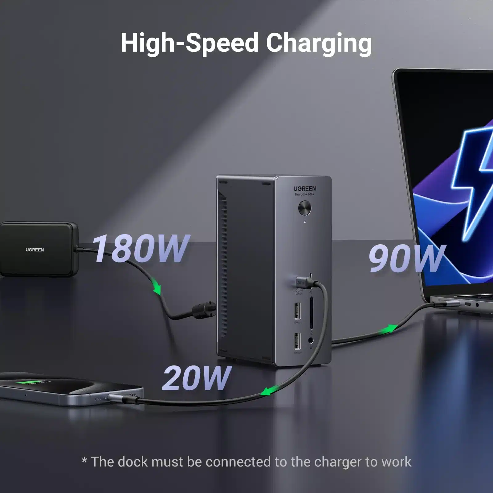 - 90 Watt oplaadfunctie: hiermee laadt u gelijktijdig uw laptop of MacBook op tot wel 90W.