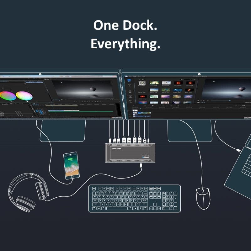 Met deze ultieme USB-C Docking Station van WAVLINK breidt u uw USB-C of Thunderbolt 3 laptop of MacBook uit naar het grootst mogelijk aantal poorten. Deze docking station biedt maar liefst 13 poorten: